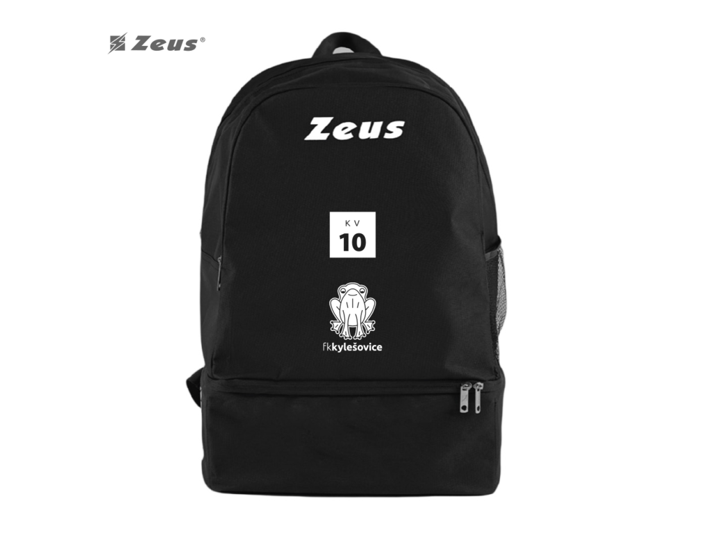 Batoh Start je vyrobený z pevné tkaniny a doplněný o tištěná loga. Nabízí přední vstup do hlavní komory se zapínáním na zip, spodní oddíl na boty s pevným dnem a polstrované ramenní popruhy pro pohodlné nošení. Nechybí ani boční síťovaná kapsa třeba na láhev. V ceně tohoto modelu je logo klubu FK Kylešovice a iniciály + číslo v bílém čtverečku. Požadované iniciály a číslo prosím uveďte v poznámce k produktu.